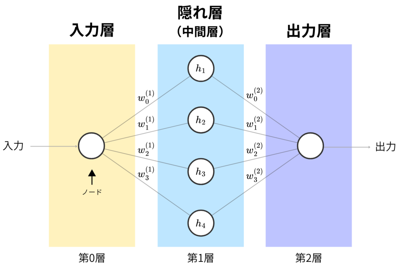 実際には、これらの重み やバイアス は、モデルの出力と正解データとの誤差を最小化するように何度も更新することで、最も誤差が小さくなる値を見つけていく。(この過程が学習と呼ばれる)