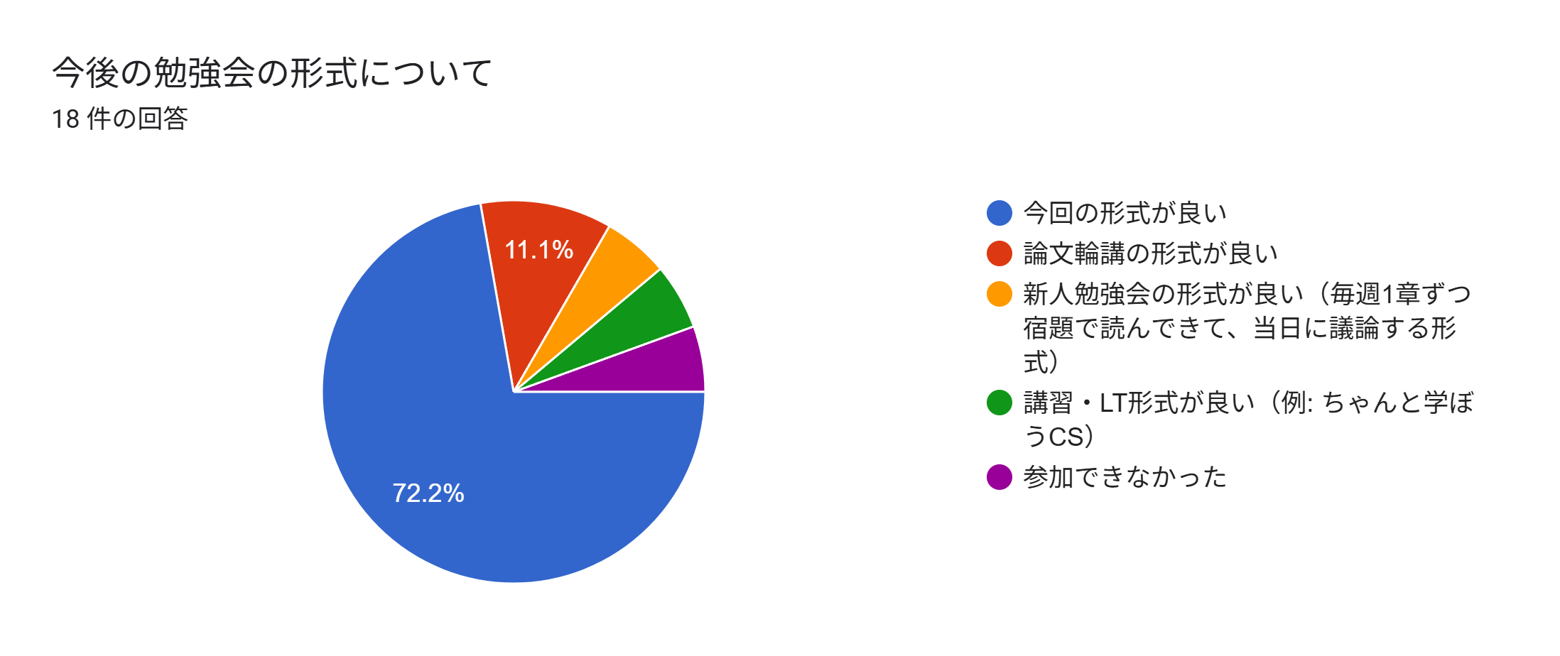 実際に4ヶ月間、毎週のミーティングにこの形式を組み込んで運用した後、最終週に匿名のアンケートを実施しました。有効回答数は18件です。